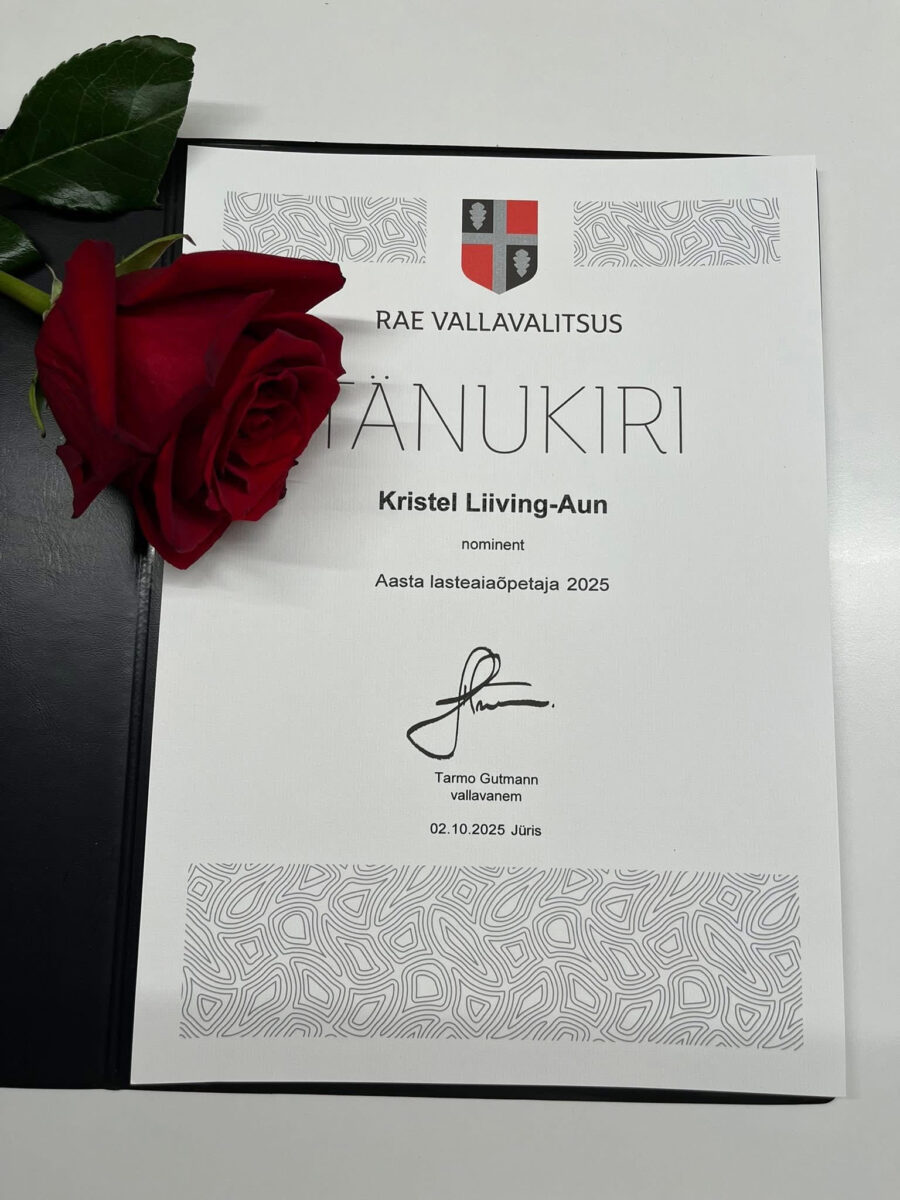 * õpetaja Kristel Liiving-Aun sai nomineeritud AASTA LASTEAIAÕPETAJA 2025 nominendiks