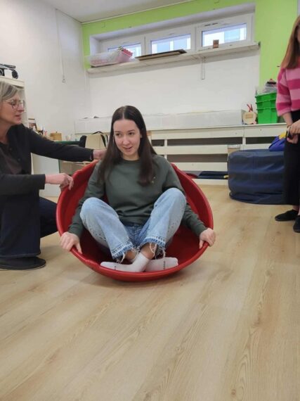 Mais 2025 külastasid neli õpetajat Sloveenias, Ljubljana lähedal asuvat metsahariduskeskust. Keskus on ellu kutsustud riiklikult ning on mõeldud koolidele ja lasteaedadele metsahariduse ja õuesõppe edasi andmiseks. Klassid tulevad 5 päevastele programmidele ja lasteaiagrupid 3päevastele programmidele, mil elatakse metsahriduskeskuse ruumes. Selline võimalus on igal klassil/grupil vaid korra aastas. Meie õpetajatele meenutas see enam lastelaagri keskkonda. Viie päeva jooksul said meie õpetajad kogeda mitmeid erinevad liikumist soodustavad mänge nii toas kui ka õues. Ruumikasutus oli korraldatud liikuma kutsuvalt (põrandal, asfaldil statsionaarsed mängud) ja sisaldas mitmeid tegevuskeskusi (lüpsimäng, muinasjuturada jne). Läbivalt valdas neid päevi vaba olemine ja õppimine looduses. Looduslikud klassiruumid olid väga inspireerivad ning kasutusel olid metoodikad, kuidas laps läbi looduse teeb ka õppetööd (putukavihik, luubid).